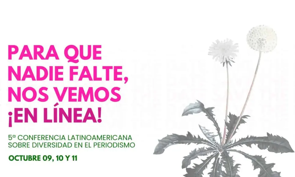 La Red para la Diversidad en el Periodismo Latinoamericano (REDIPE) convoca a su 5ª Conferencia Latinoamericana sobre Diversidad en el Periodismo, que se llevará a cabo de forma virtual los días jueves 9 y viernes 10 de octubre, con una jornada adicional de talleres virtuales el sábado 11.