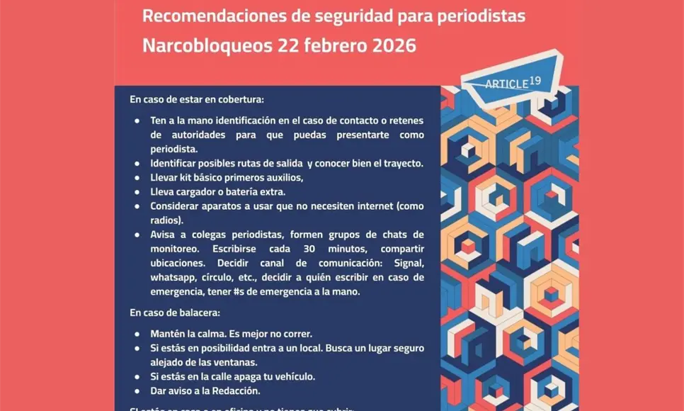 La organización de defensa de la libertad de expresión Artículo 19 documentó al menos ocho ataques contra periodistas durante la jornada de bloqueos y hechos violentos en distintas entidades del país el día de ayer vinculados a operativos contra el crimen organizado.