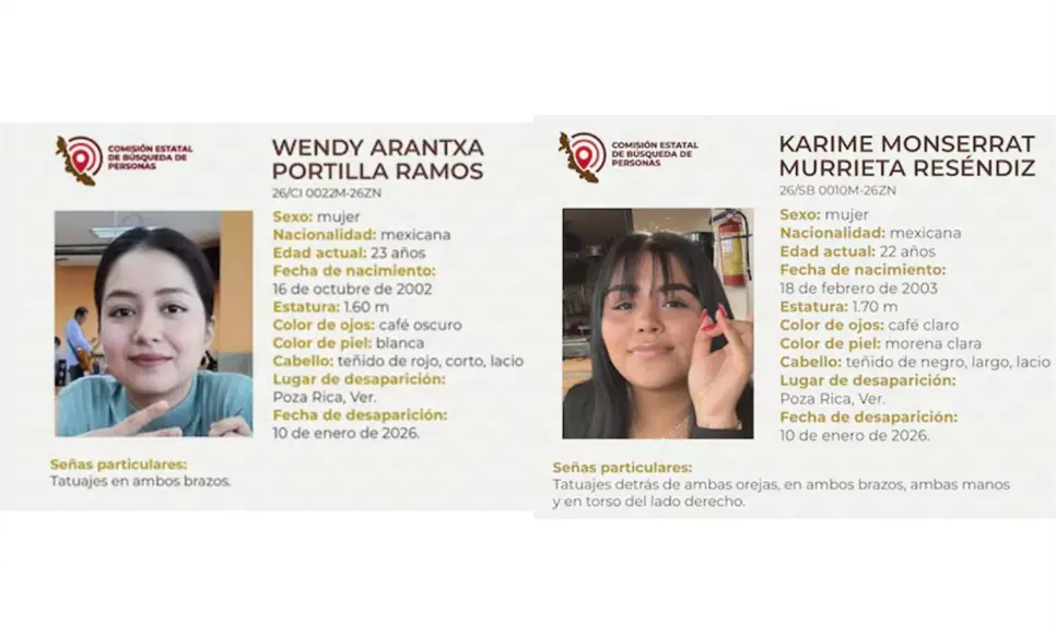 La noche del sábado 10 de enero, fueron reportadas como desaparecidas Wendy Arantxa Portilla y Karime Monserrat Murrieta, ambas de 23 años, luego de asistir al funeral del periodista Carlos Castro, asesinado el pasado 8 de enero en el municipio de Poza Rica, Veracruz.
