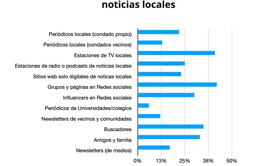 Una de las conclusiones más destacables de la encuesta es que quienes viven en estos desiertos no consideran que les falten fuentes locales. Más del 90% afirmó que es fácil acceder a noticias sobre su comunidad, aunque estas provengan de canales no periodísticos.