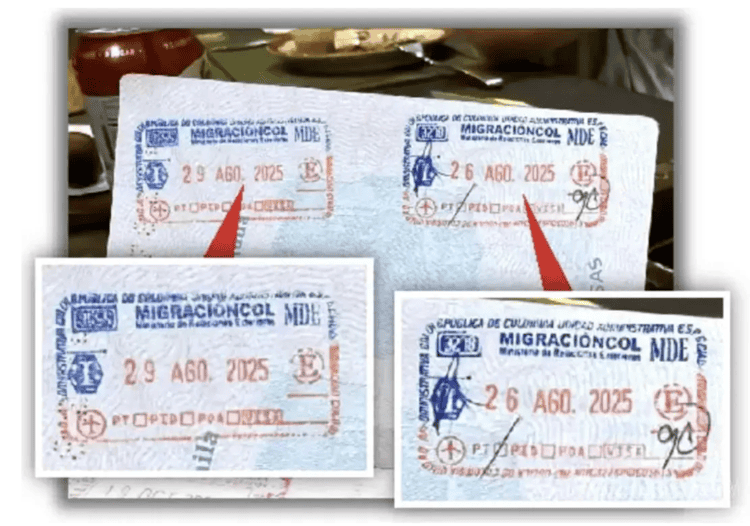 Además del pasaporte con sellos de migración (ingreso el 26 de agosto y salida el 29 de agosto de 2025), la defensa aportó: