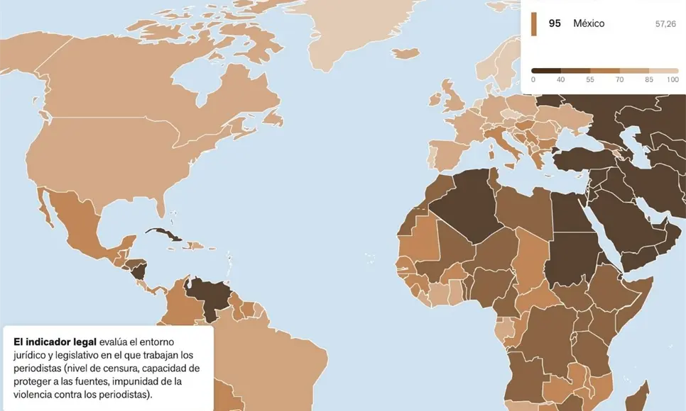 El director regional de RSF, explicó que este movimiento no necesariamente se derivó de la aprobación de una ley específica, sino de una percepción más extendida de presión judicial sobre medios y periodistas, así como por una menor eficacia del aparato legal e institucional para proteger la libertad de prensa