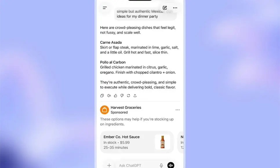 OpenAI anunció que empezará a probar anuncios publicitarios en su plataforma gratuita y en el plan de bajo costo (Go) de ChatGPT.